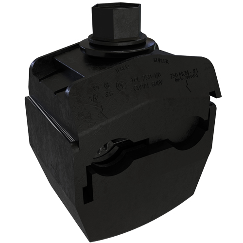 onnector (IPC) provides reliable mechanical connections for large gauge conductors in electrical systems. It joins main conductors from 1 AWG to 250 MCM with tap conductors ranging from 6 AWG to 4/0, supporting both aluminum and copper stranded cable applications, creating secure splices in electrical lines and is ideal for maintaining the integrity of the insulator.